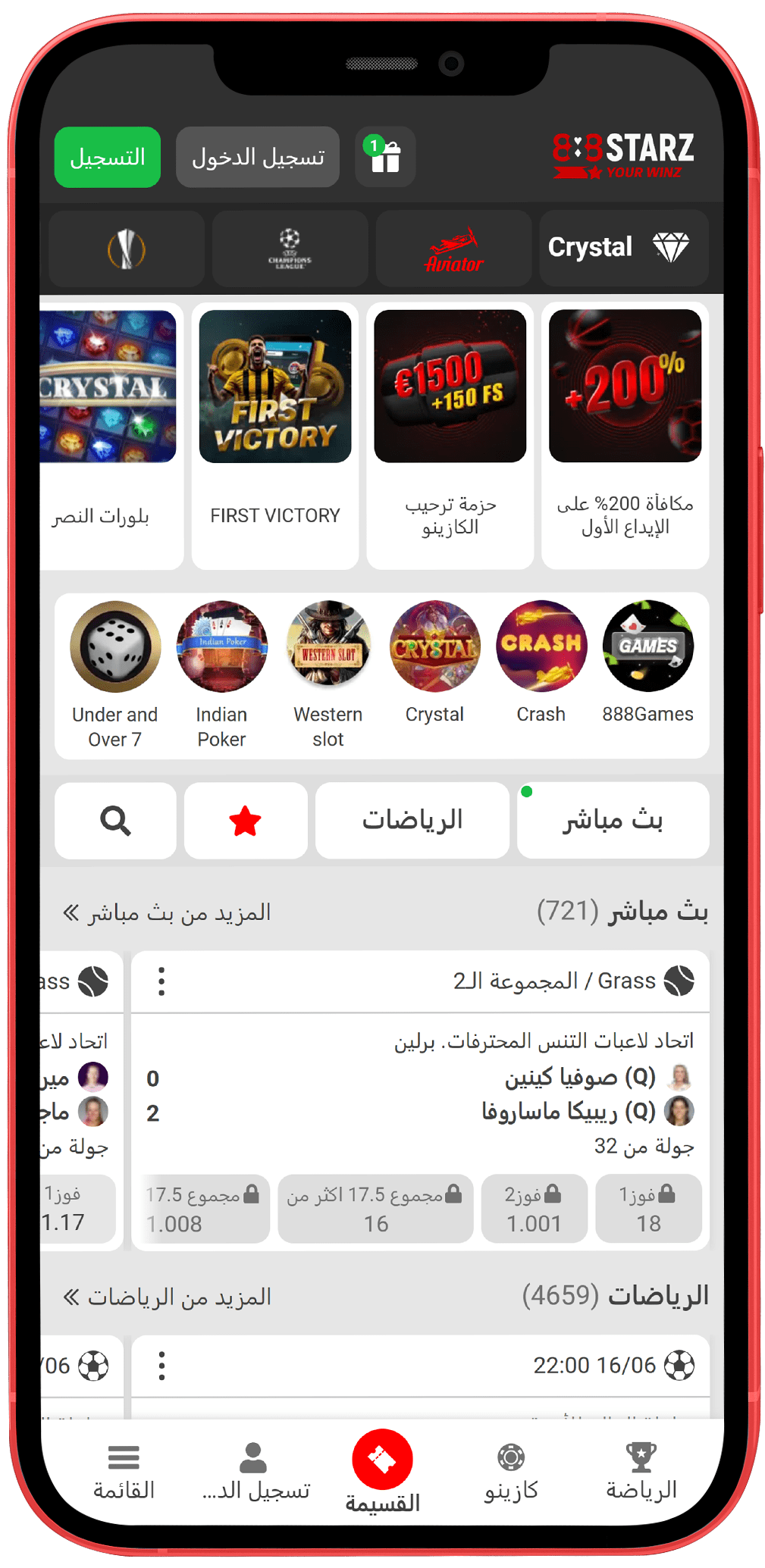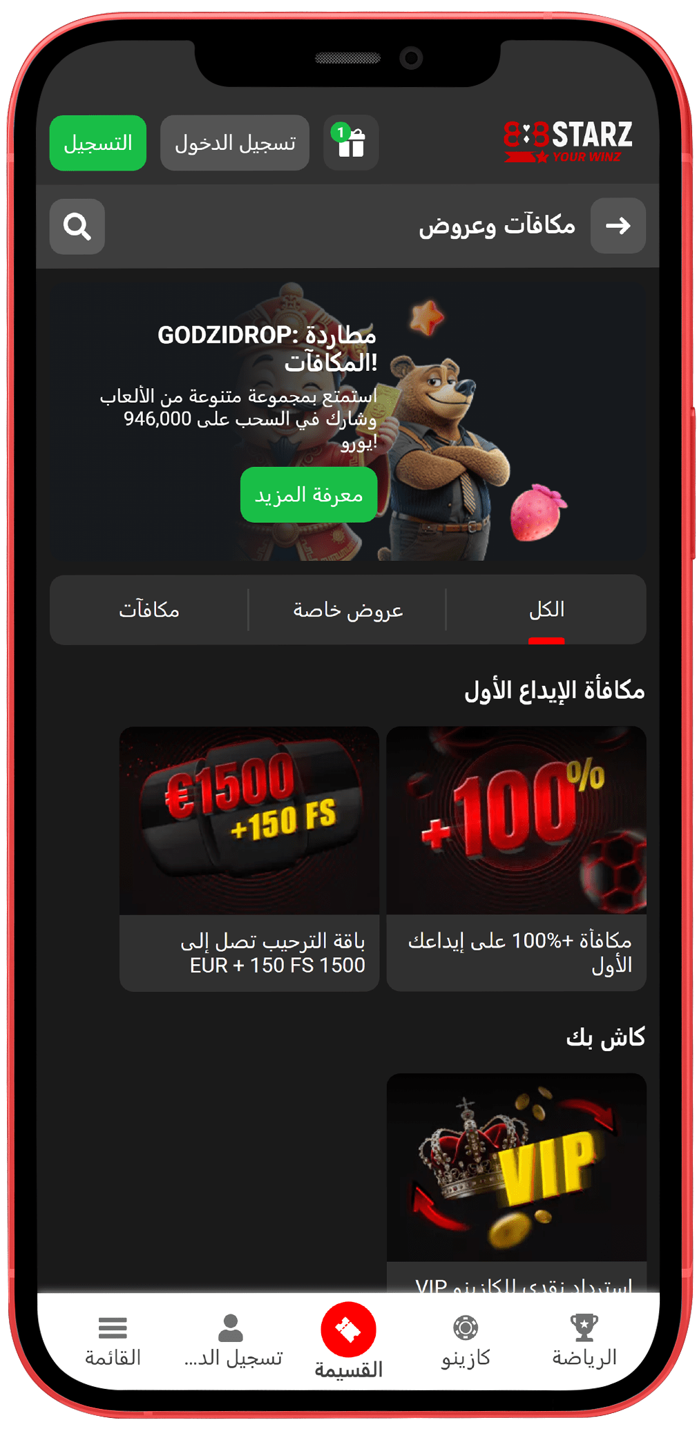 دعم اللغة العربية تطبيقات 888starz لأجهزة آيفون و أندرويد مترجمة إلى اللغة العربية. وهذا يشمل التسجيل والألعاب والدردشة المباشرة. يمكنك تغيير اللغة في الإعدادات في أي وقت.